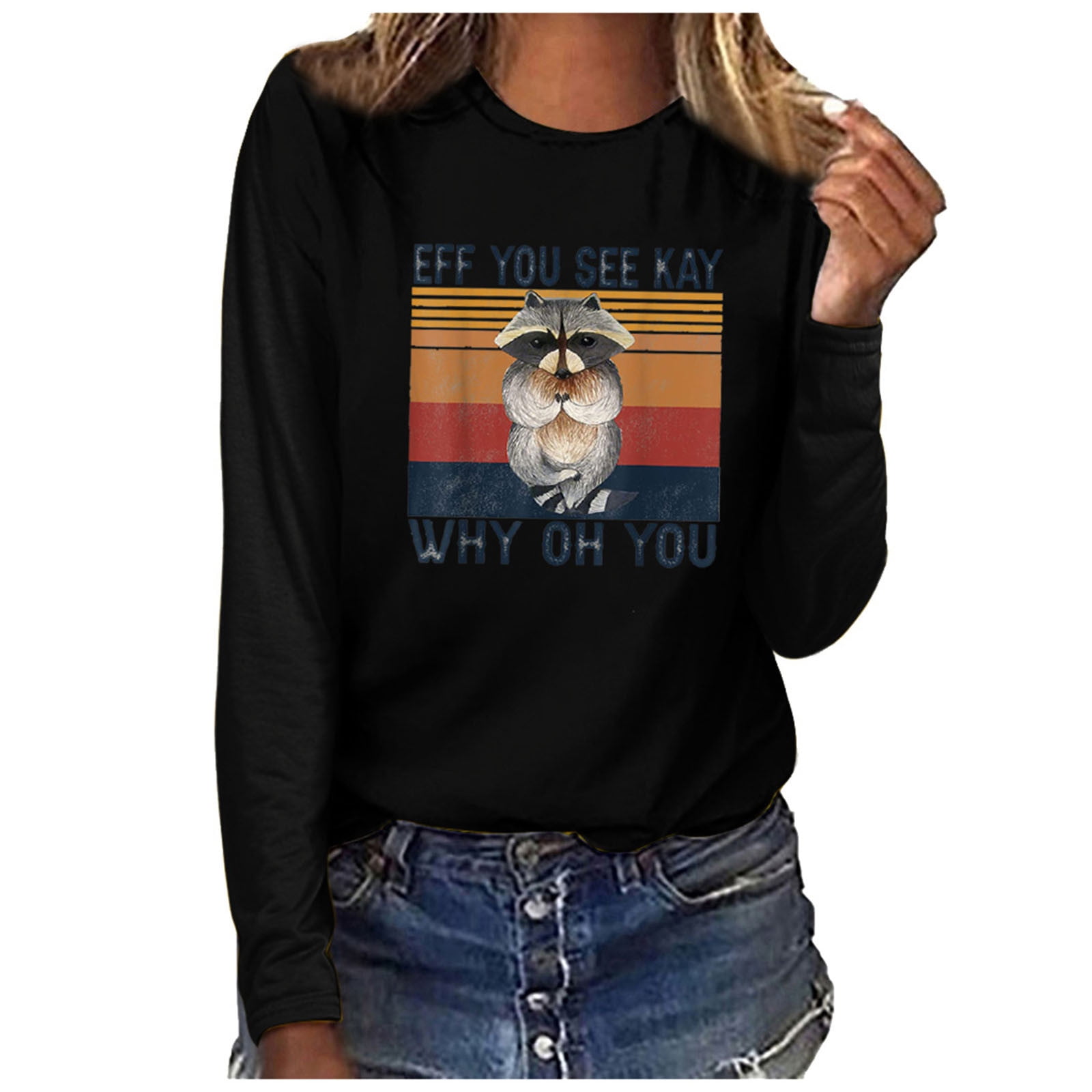 Eff You See Kay Why Oh You Women S Letter Print Long Sleeve Crewneck Top Fashion Women S Letter Print Pullover Tops Long Sleeved Comfortable Blouse Reduced Price And Clearance Sale Walmart Com